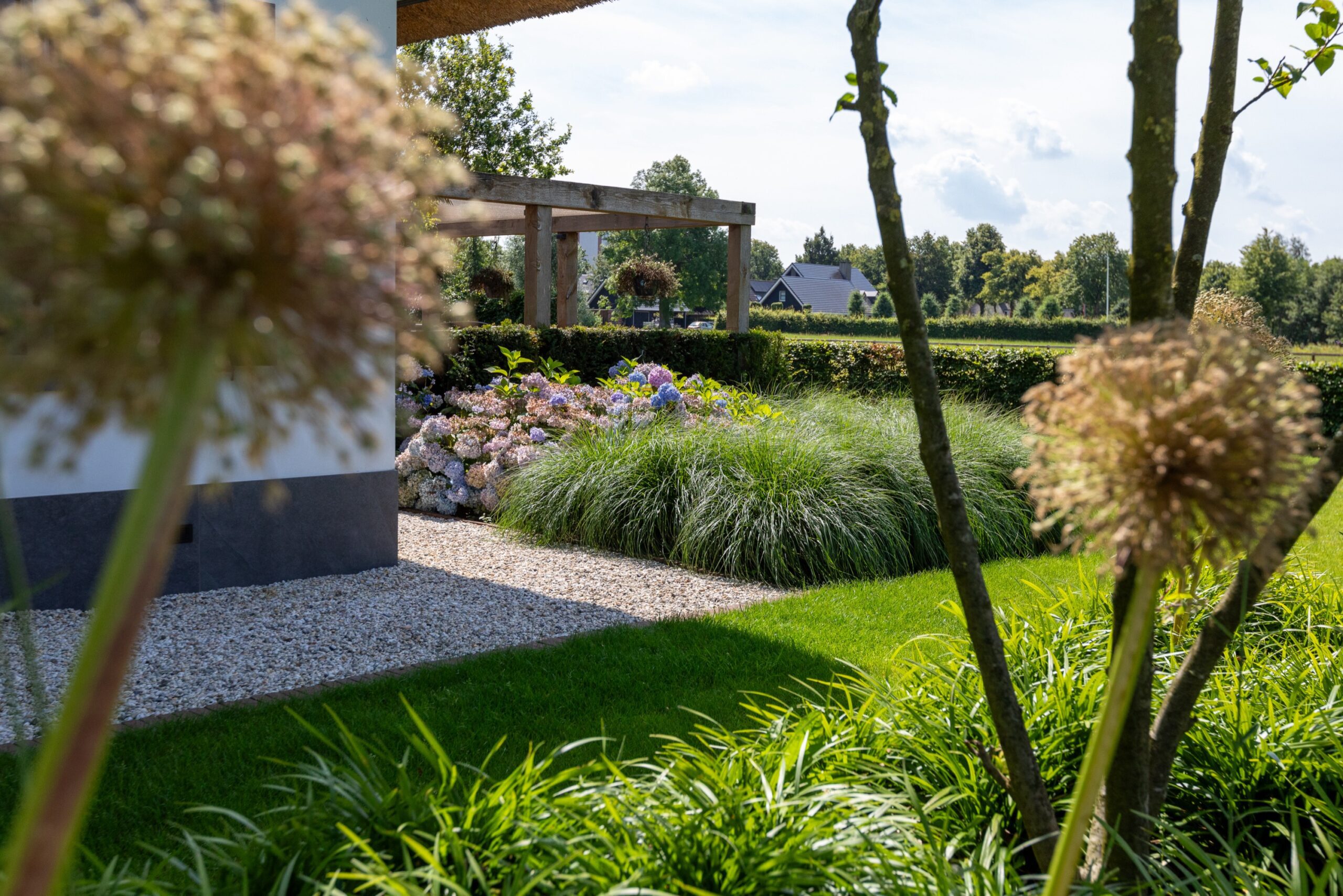 Deze tuin is compleet door ons aangelegd, een mooie combinatie van landelijk met strakke cortenstalen bakken.